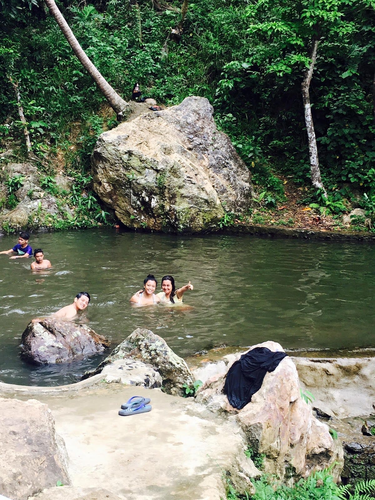 Lastly, here is a picture of my sister in a swimming hole in the Philippines. She became mysteriously ill after swimming there. By the advice of my family, she went to see an albuleryo as they believed that she carried a spirit back with her from the forest. After seeing him, she was cured of her sudden onset of stomach pain. It might be someone’s t-shirt hanging on the bushes, but in the picture on top of the rock at the base of the tree, it looks like there is a small figure there crouching and looking upward.