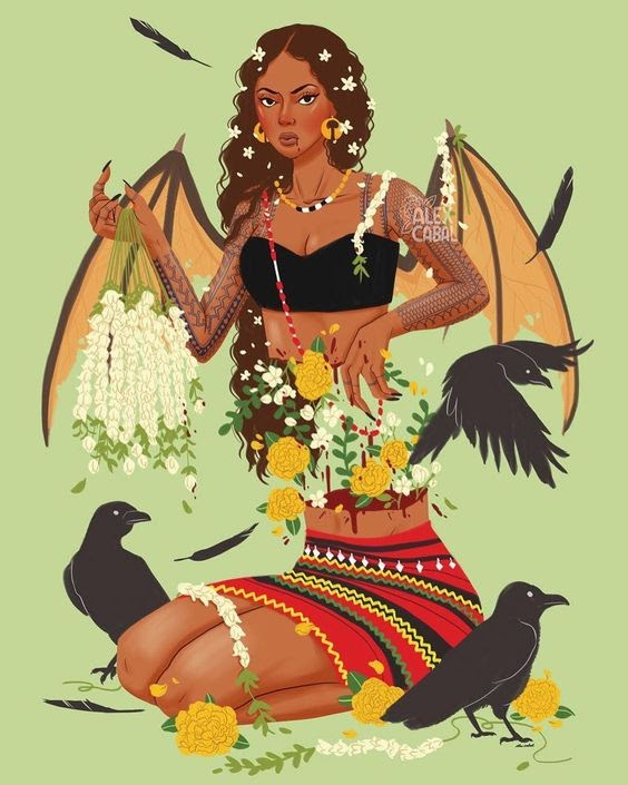 I learned about manananggals on a trip to the snow when I was really young. My uncle had taken my cousins and me to a cabin up in Lake Tahoe. It was probably one of the first overnight trips I had taken without my mom or grandma there. Before we went to bed my older cousins were chatting. I was too young be a part of the conversation, but I listened when they talked about this creature that looked like a beautiful women in the day, but at night her body would split in half at the waist with her guts trailing behind. Her top half would sprout wings and she would fly around at night and suck the blood out of people with her long tongue while they slept. Her favorite things to eat were unborn babies. She’d suck them straight out the womb. She also liked newborn babies and small children. As I silently eavesdropped, I sunk into my blanket and tried to turn my brain off from imagining this creature hunting for me in the night. (As I write this, I realize how fucking terrifying that is for a kid. No wonder I was afraid of the dark!)